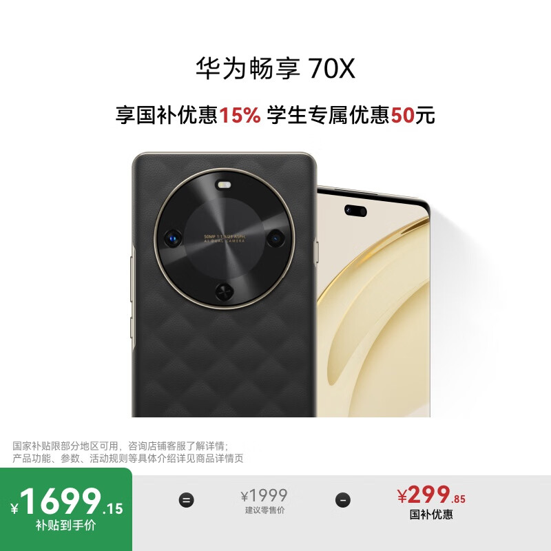 华为畅享70X享有国家15%的补贴优惠,存储容量为256GB,采用曜石黑配色,具备巨鲸级长续航能力,配备双曲护眼屏,拥有五星级的超耐摔特性,属于鸿蒙系统的曲面屏手机