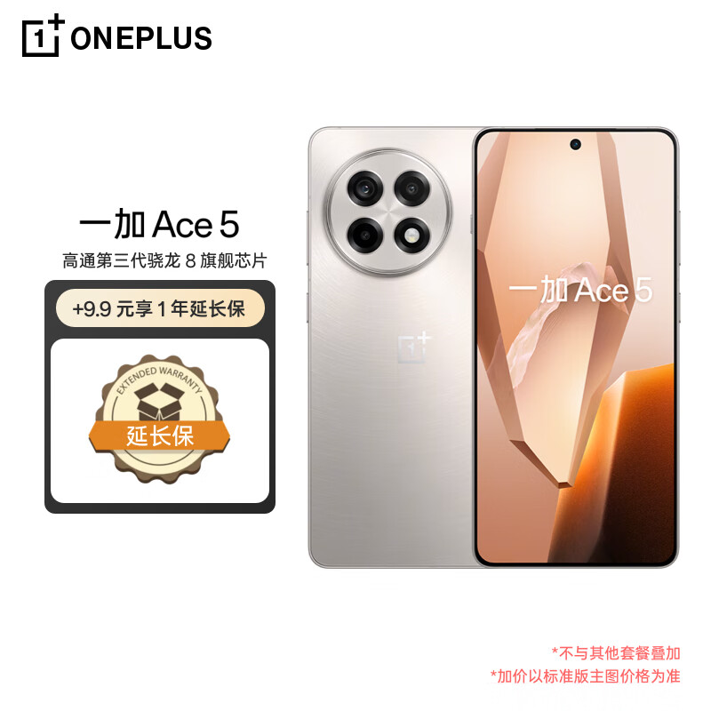 Ace5 16GB+256GB 配备引力钛机身,搭载第三代骁龙8处理器,属于OPPO品牌下的游戏AI智能5G手机,包含一年延长保修服务套装