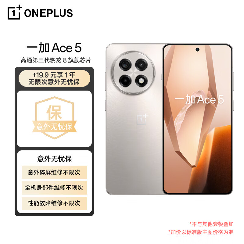 Ace 5 12GB+512GB 配备引力钛机身,搭载第三代骁龙8处理器,采用OPPO游戏AI技术,支持智能5G网络,包含【1年无限次意外无忧保套装】