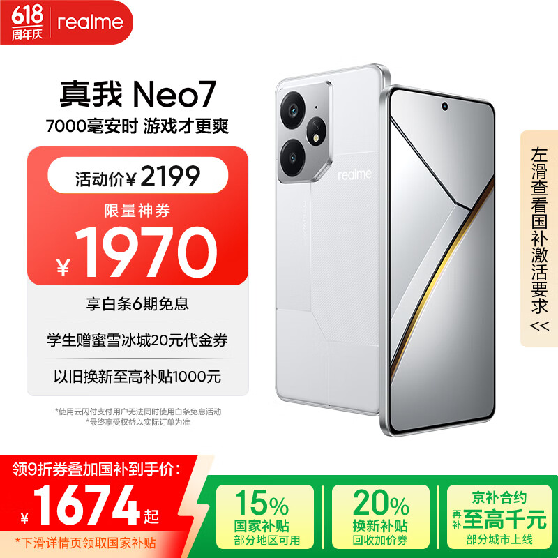 国家提供财政支持,真我Neo7采用天玑9300+芯片组,配备大容量电池,拥有防蓝光电竞直屏,内置智能人工智能系统,存储容量为12GB加512GB,型号为星舰版本
