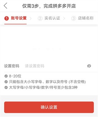 接下来需要执行三项步骤才能完成拼多多店铺的创建,首先可以设定密码并点击“前往配置”。系统会显示密码修改页面,必须依照页面上的指引更改密码,密码中要包含数字、字母,并且区分大小写,同时注意密码的长度,设置妥当后,点击“确认变更”,若密码修改顺利,会通知“变更成功”。