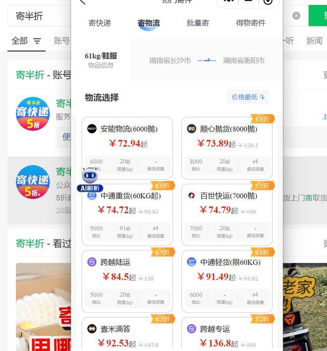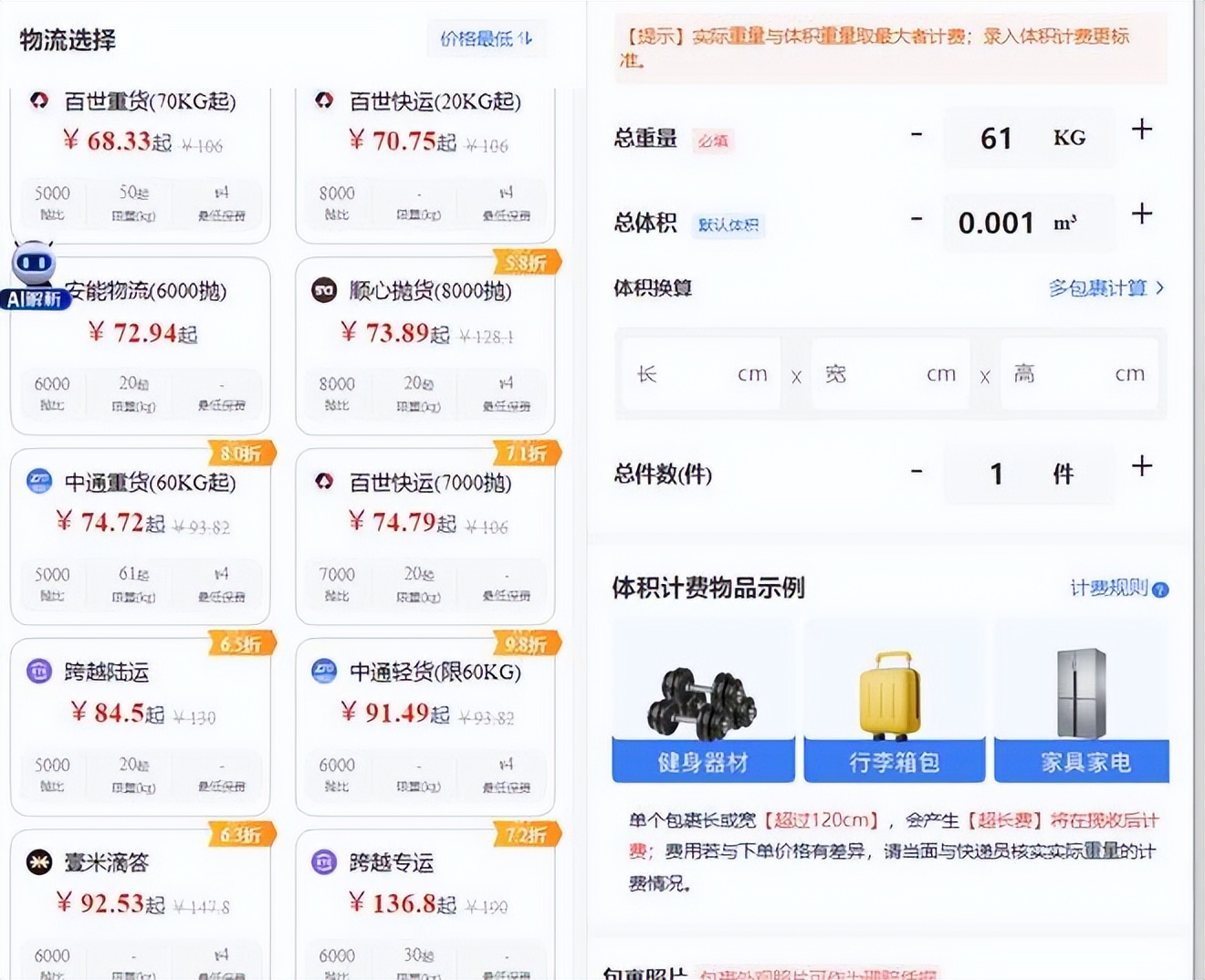 不要只关注正式的定价,诸如“优惠包邮”“运费减半”这类物流比较平台,能够帮助降低费用:
