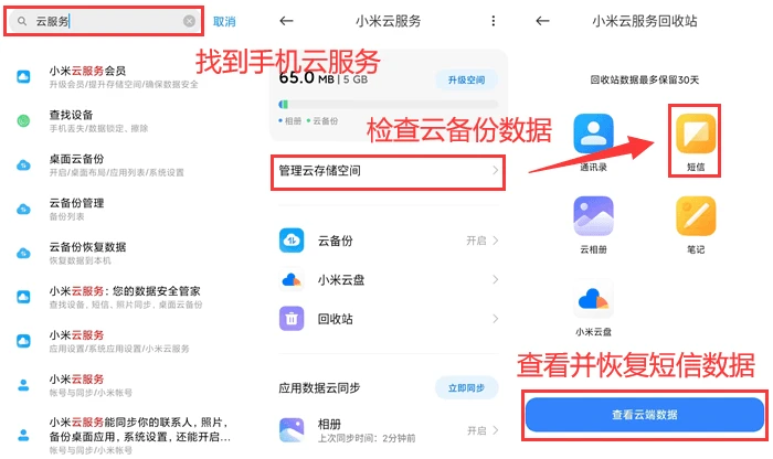 手机短信恢复方法1.云服务