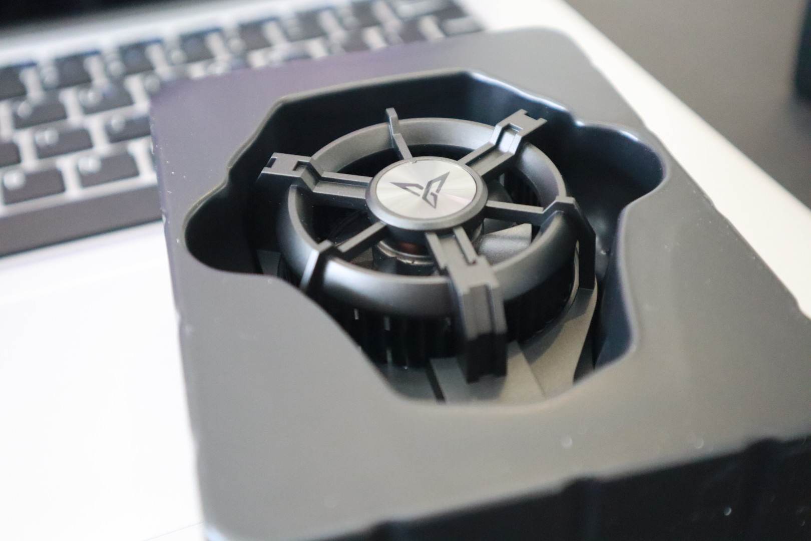 揭开外层纸盒,便可以看见飞智蜂翼2Pro手机散热器的整体构造了,初次映入眼帘,这款散热器所散发的未来气息颇为显著。单凭第一印象,许多不熟悉的人甚至可能误以为是某种尚未公开的新技术产品。