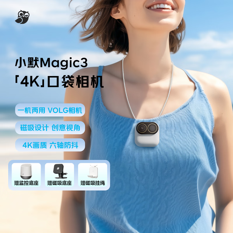 在京东自营售卖的,小默口袋相机,这是一款运动相机,也是vlog相机,还是魔法相机,具备4K超清画质、六轴AI防抖、强力磁吸且全能的特性 。