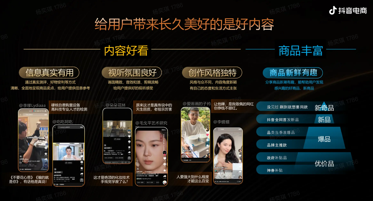 能够撬动全域流量的关键在于“好内容”,从聚合抖音优质内容的“抖音精选”,到为电商类内容制定标准的“电商好看计划”,抖音电商对于优质内容的鼓励导向已然非常明确,特别是在新机制之下,优质内容不但是获取内容池自然引发流量的一块敲门砖,而且还能够转变成为电商池以及广告池用以投放的基本素材。