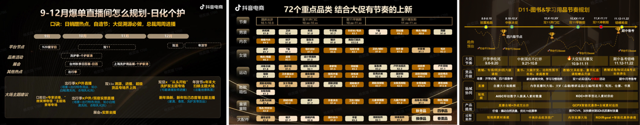 双 11 在许许多多种品类处于秋冬换季节点,个护日化行业与服饰行业都得紧紧扣住秋冬这个季节以及双 11 节点所产生的需求啦,要精确地、恰到好处地揪住击中用户痛点呀。个护日化行业吧,他可以把关注点放在处在秋冬季节的身体护理产品方面,还有那个迫近年末时期的清洁用品上。服饰行业这家呢,需要依据周期之内的气温变化进而进行调整,在 10 月的时候主推保暖内衣、卫衣等这种秋末过渡时期穿的款式,到了 11 月呢就要转移到羽绒服、棉服等这类具有重度保暖功能的装备上;与此同时哦,服饰行业的运营指南还明确指出了呢,就是在满足基础保暖这个功能以外呀,像裸感美肤等这类升级之后的材质同样是能够被当作具有差异化的卖点的。图书以及学习用品这类属于教育范畴的产品,同样能够借助“期中备考”这样的关键节点,把教辅试卷当作双11重点推广的方向,去适配家长和学生当下的即时需求。