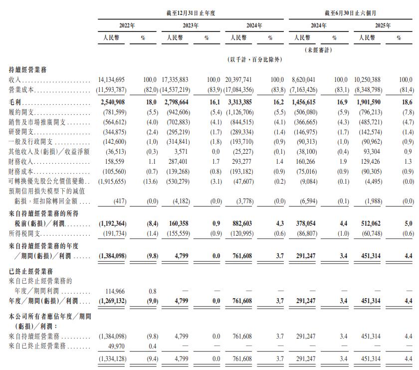 上市申请书中表明,京东工业持续经营这项业务的总收入,在2022年为人民币141亿元,到2023年增长至173亿元,2024年达到204亿元,其复合年增长率是20.1%。持续运营业务的总收入,在截至2024年6月30日止六个月时为人民币86亿元,增加了18.9%,到截至2025年6月30日止六个月变为人民币103亿元。