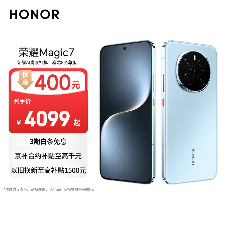 它是荣耀品牌的一款手机,它具有荣耀AI鹰眼相机,它配备荣耀AI自然光绿洲护眼屏,它采用巨犀玻璃,它内存为12加512,它机身颜色是天际蓝,它支持5G,它具备AI功能 。