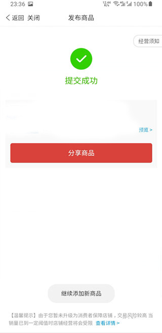 5、商品呈现提交已成功的状态后,进入等待审核的阶段,在审核获得通过之后,便能够开展分享商品的行动,以此引得客户前来购买这种商品。