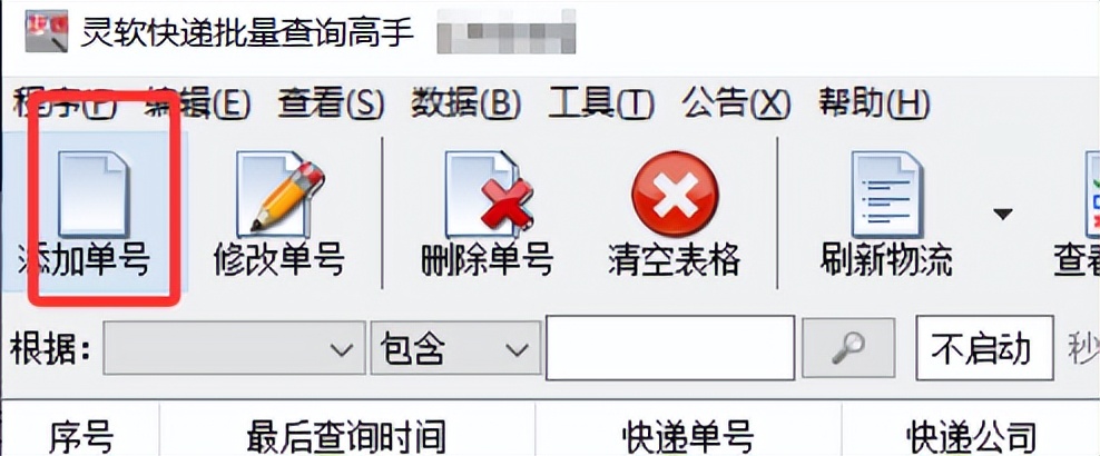 打开快递批量查询高手软件,于软件界面里寻觅到添加单号这个功能选项,而后点击它。