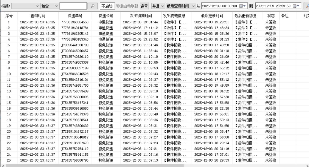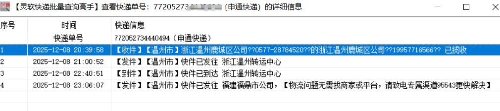 在查询任务终结之后,于软件的主要界面范围之内,能够清楚明晰地看见所有单号相关的物流动态情形之时。