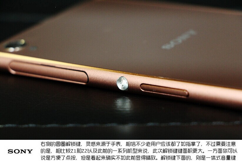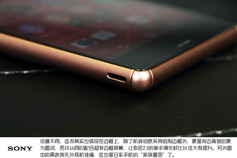 索尼的系列始终有着一种不同于其他智能手机的独特气质,有人对此表示讨厌,有人却喜好有加,新一代旗舰Z3同样如此。在外观设计方面,Z3依旧显得优雅,它运用了镁铝合金边框以及双玻璃,制作工艺精细,极具质感,其机身厚度仅有7.3mm,相较于同级别竞品手机要明显更薄。接下来,小编为大家带来了被称作土豪金的索尼Z3的上手体验图赏,让我们一同来瞧瞧吧 !