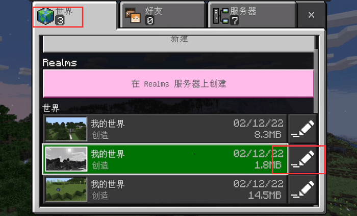 2、点击“世界”,选择“我的世界”右边写入点击进入