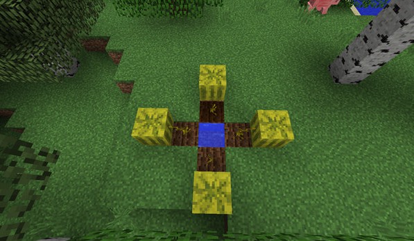 像是图里呈现的那样,这属于一种存在差错的种植示范,这样的种植方法唯有处于最外层,而且和泥土方块不存在高度落差的瓜藤才有机会结出果实。