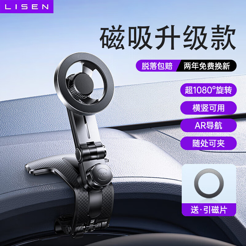 李森车载的手机支架,是磁吸式的,用于车辆,可当作手机导航夹来使用,它能够通用,特别是适用于HUD,在中控台、仪表台放置时很稳固,。