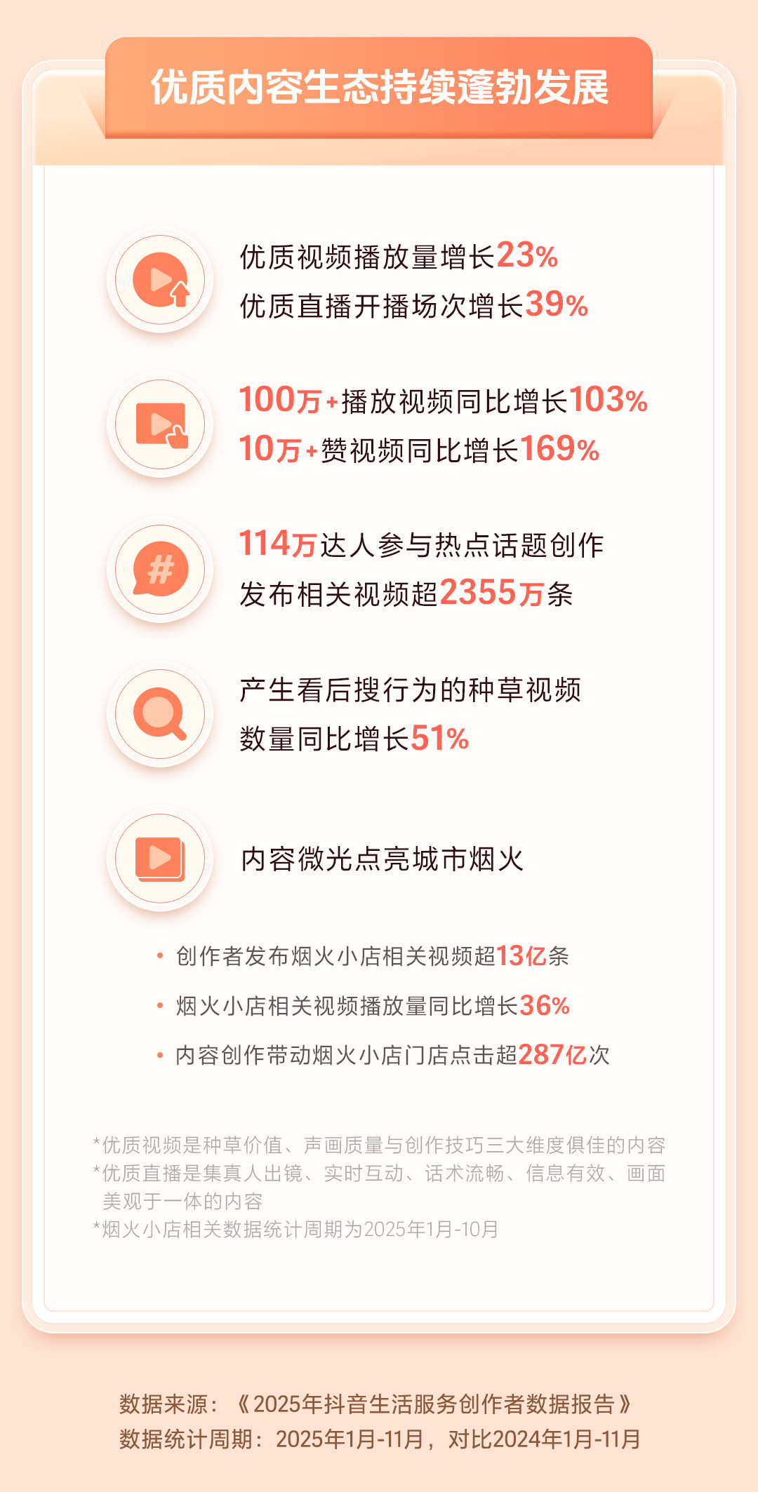 12月29日,《2025年抖音生活服务创作者数据报告》发布,此报告简称“报告”,报告表明,平台之上生活服务相关内容生态持续呈现繁荣态势,已然成为连接着线上流量以及线下消费的重要桥梁 。