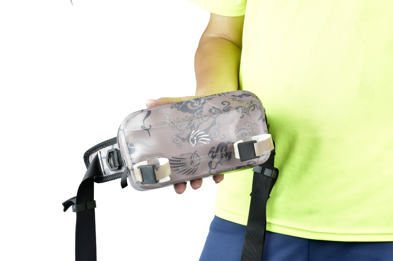 类型为卡扣式,它常见于手机防水袋,还常见于小型数码产品防水包等,是通过注塑成型的公扣具与母扣具焊接在袋口,经过扣合之后从而实现密封,其优势是操作简单,不过它仅仅适用于小尺寸的包袋,并且其密封性受到扣具磨损所产生的影响比较大 。