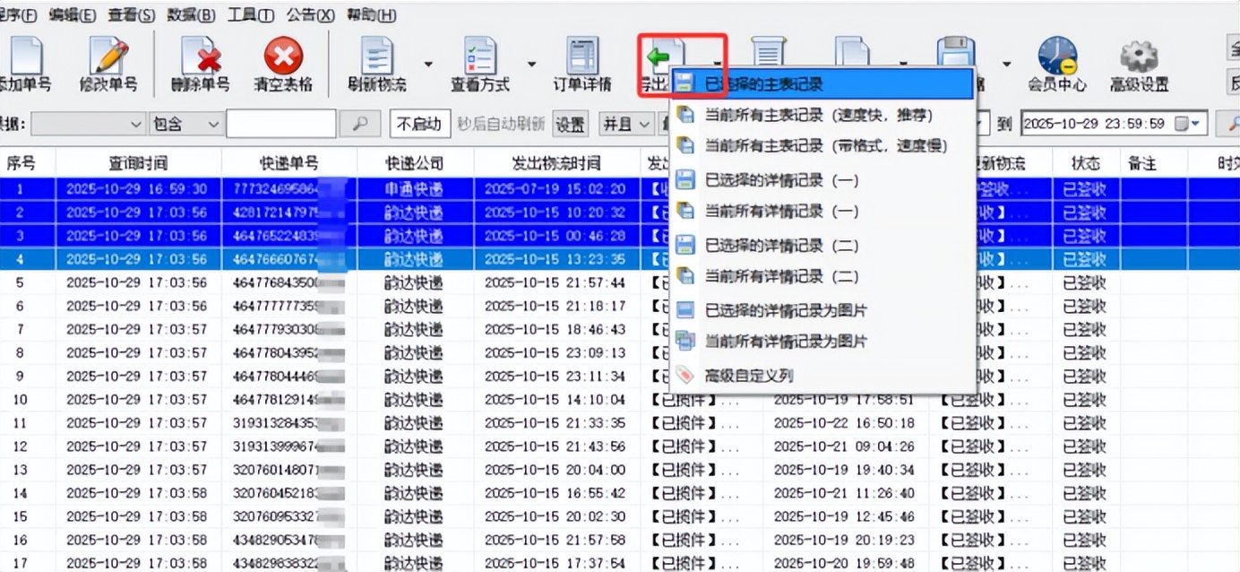 先选中那些已经签收了的需要导出的件,接着点击那个写着“导出表格”的按钮,然后选择以Excel或者CSV这种格式保存到本地,以此来方便后续做进一步的统计分析,或者是存档以供日后查阅 。