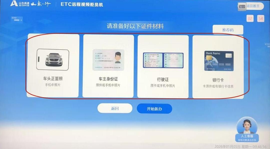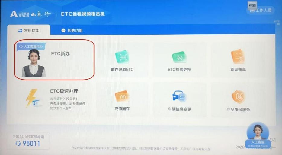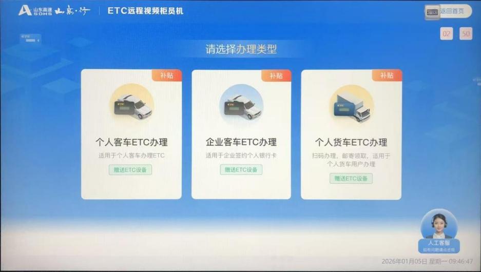 在自助服务机的首页,点击那个被叫做“ETC新办”的图标,之后,依据屏幕所给出的提示,去选择办理的类型。