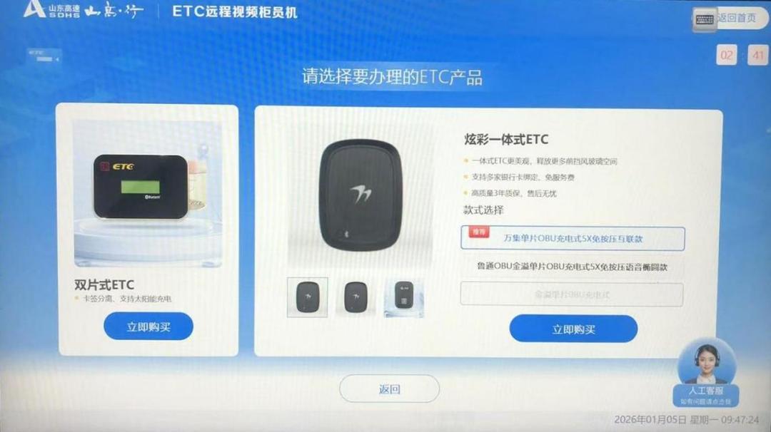 屏幕呈现出多种套餐,依据需求挑选之后,借助微信或者支付宝进行扫码支付。支付达成成功状态后,自助服务设备的出口会自动弹出ETC设备。