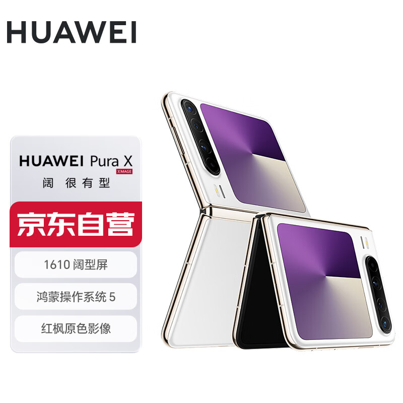 华为,一款拥有 12GB+512GB 存储容量、呈现零度白色外观、配备 1610 阔型屏形态、运行鸿蒙操作系统 5 且具备红枫原色影像功能的折叠屏手机,属于华为鸿蒙智能手机范畴 。