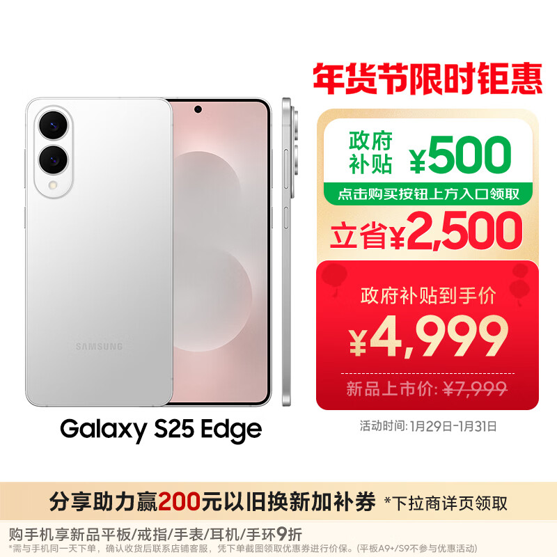 【京东自营】三星手机,5.8mm超薄,旗舰版,骁龙8至尊版,具备AI拍照功能。