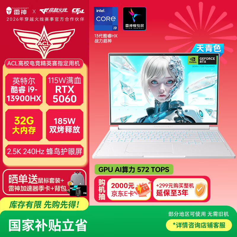 国家政府补贴的,有着一种特色的,专门针对学生群体的,用于游戏的,16英寸的,名为雷神猎刃S的笔记本电脑,是在京东自营所售的。