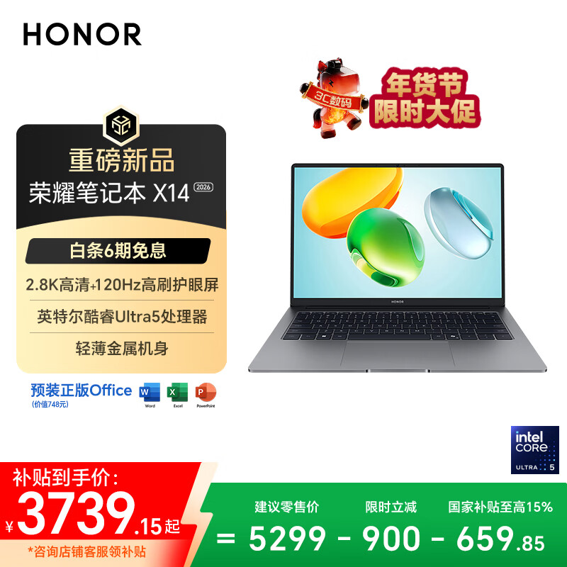 推荐入手:荣耀X14轻薄笔记本电脑 2026款