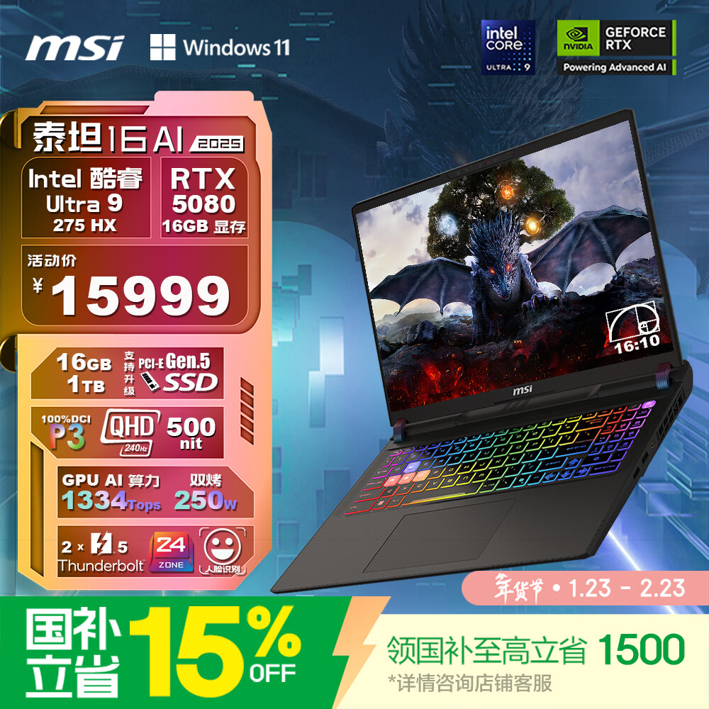 【京东自营】微星泰坦国家补贴16英寸游戏本笔记本电脑