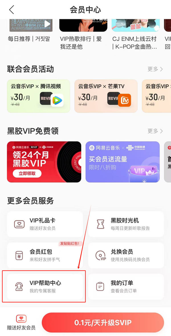 2、在会员中心页面下滑找到【VIP帮助中心】选项。