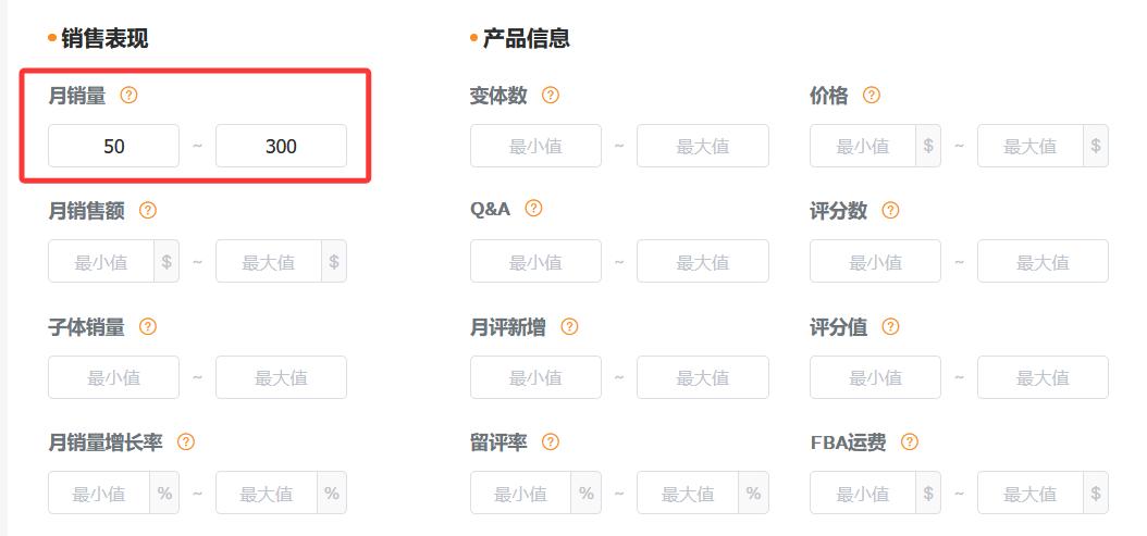 ️2.下面筛选功能,在月销量中输入数字。