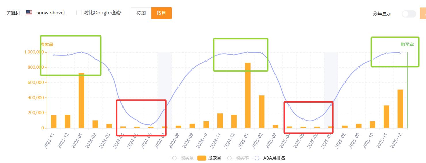 因为季节性产品,其生命周期是比较短的,并且备货压力是很大的,像庭院雪铲这类产品就是如此。