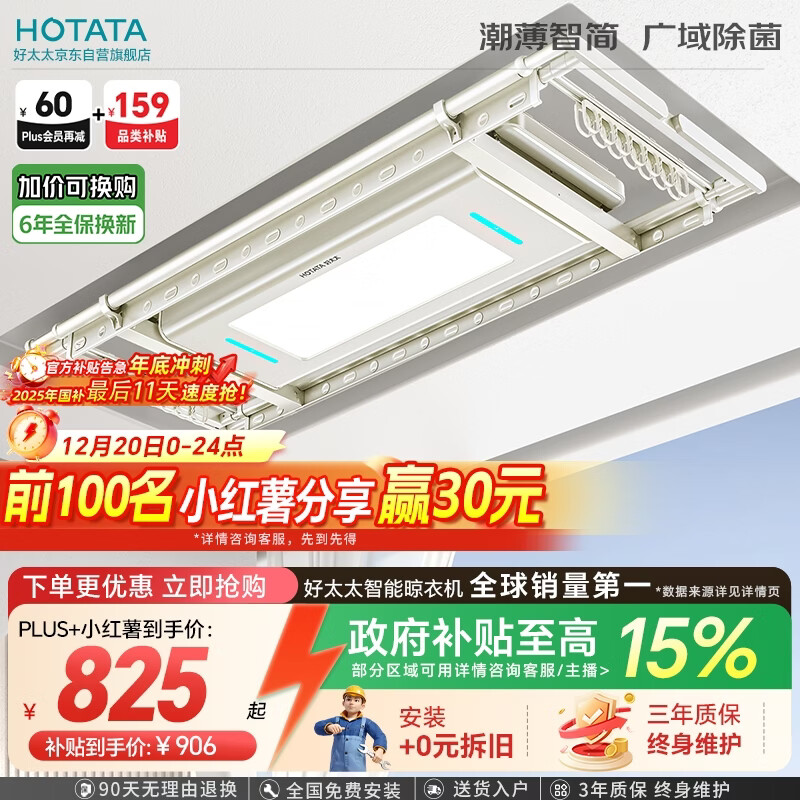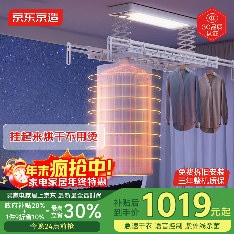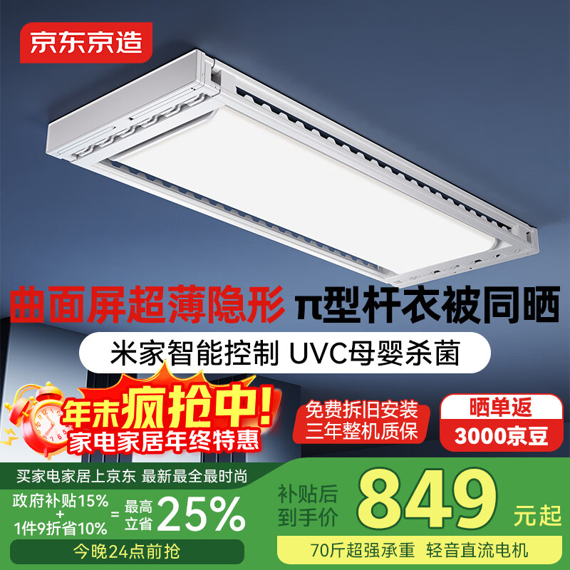京东京造的,带有国家补贴的,M1电动晾衣架,是超薄隐形的,具备智能晾衣功能的,有母婴横杆的,能全屏照明的那种。