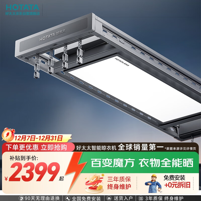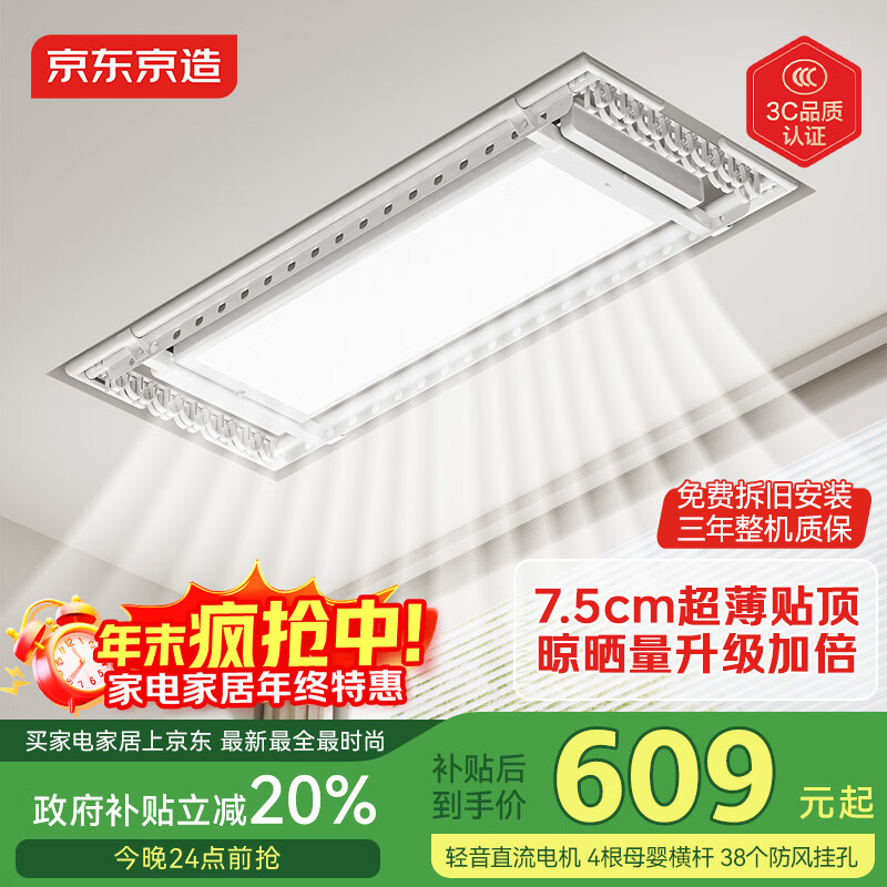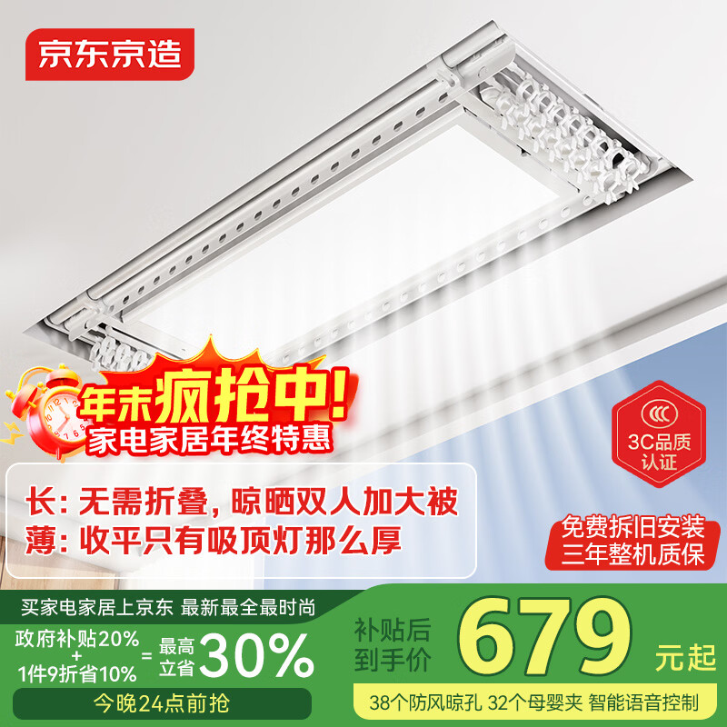 京东京造的,且是有国家补贴的A2Pro电动晾衣架,它超薄,能隐形,是款智能晾衣机,带有母婴横杆,还有照明功能。