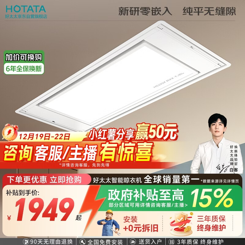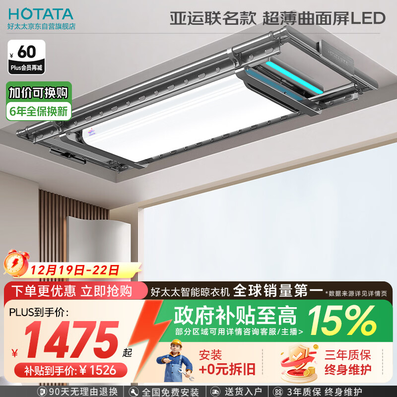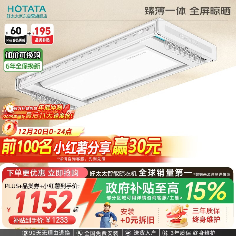 京东京造牌子下,那个有着国家补贴的,名为A1Pro的,智能电动的,可全自动升降,能嵌入还能伸缩,并且超薄的晒衣架。