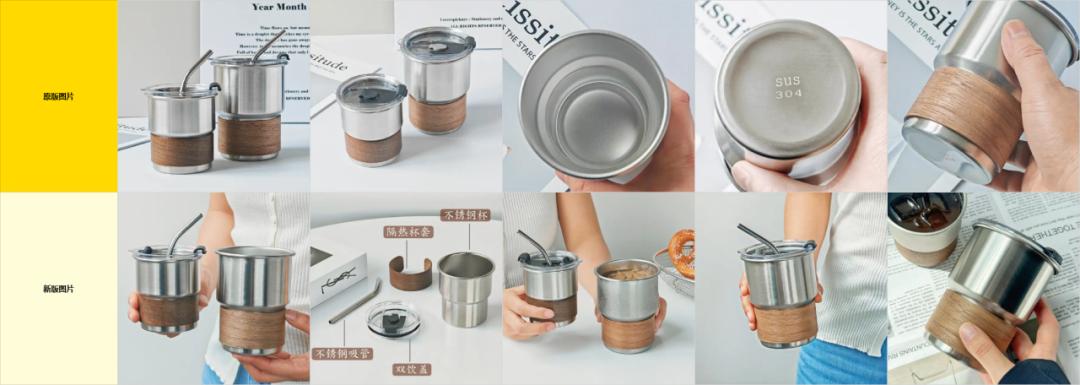 但我们为这款杯子重新做了视觉风格,拍了新图之后,