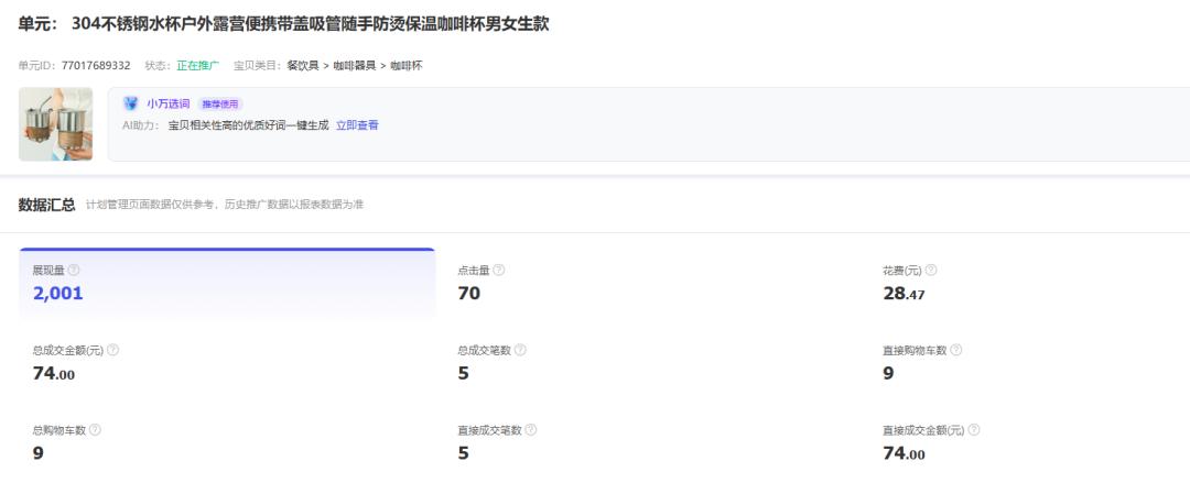 许多产品数量较多的店家,常运用这样一种打法,把一个产品推升到一定程度后,将推广关闭,随后它会自行实现销售。
