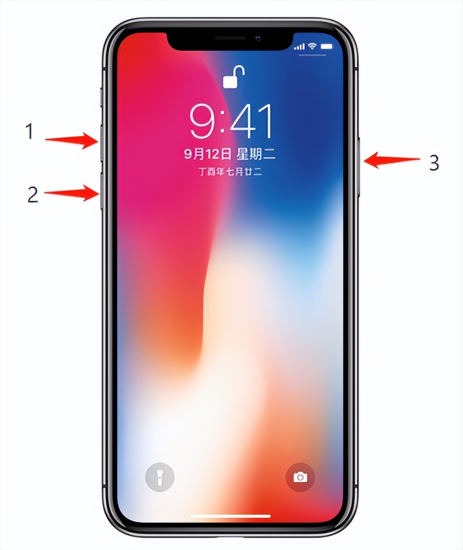 3. 最后,持续长按右侧的电源键,保持不放开,时长大约为10至15秒,直至屏幕变黑,并且出现苹果Logo之后,就可以松开手了。