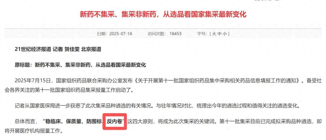 最近,医药行业有一个词热度很高,叫“反内卷”。